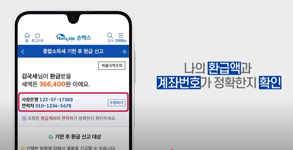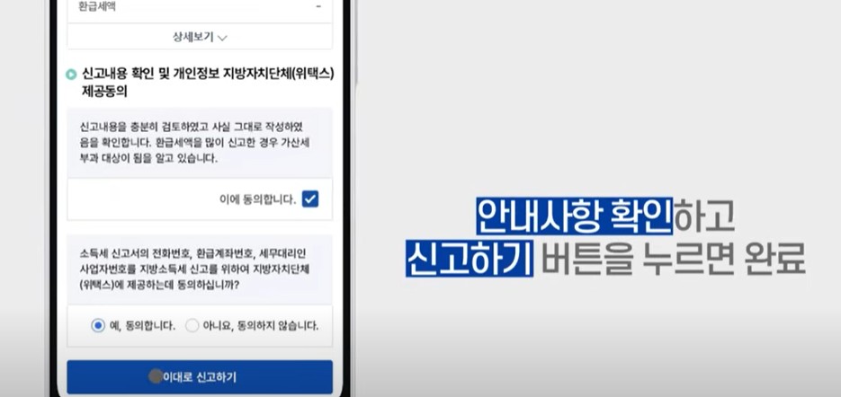 이 과정에서 정확한 환급 내역이 안내되며, 납세자는 단순히 화면을 보고 확인만 하면 됩니다.