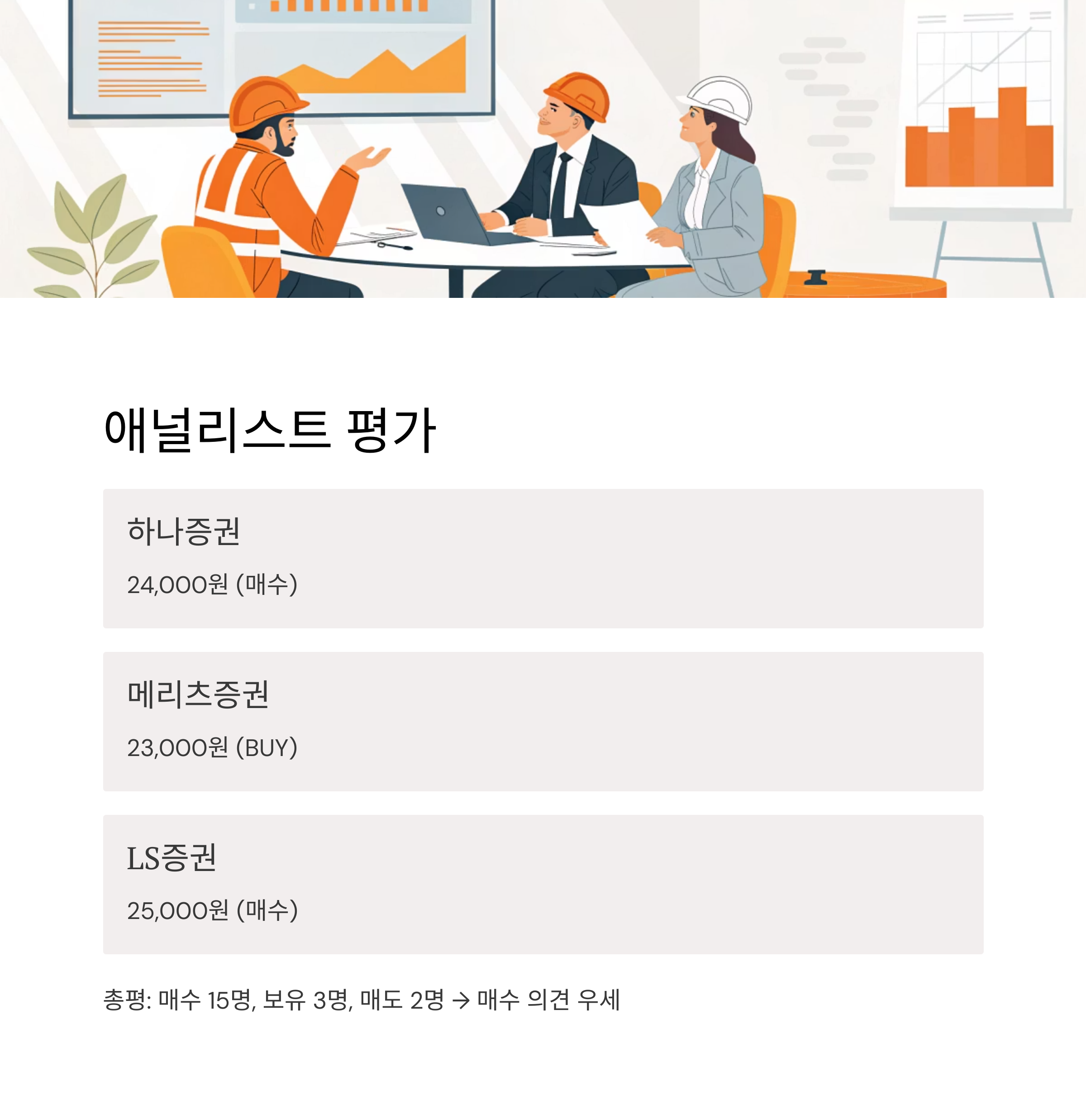 애널리스트들은 2025년 1분기 영업이익은 소폭 증가할 것으로 보고 있지만, 순이익은 다소 줄어들 가능성을 제기하고 있습니다. 이는 전반적인 건설업계의 계절적 비수기와 맞물린 결과로 보입니다.