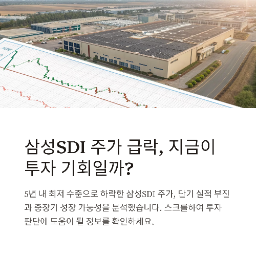 삼성SDI는 2025년 현재 전기차 배터리 시장의 침체, 유상증자에 따른 투자 심리 악화 등으로 인해 주가가 최근 5년 내 최저 수준까지 하락한 상태입니다. 그러나 기술 개발, 글로벌 생산 확대, 전고체 배터리 상용화 등 중장기적 성장 전략은 여전히 유효하며, 저평가 구간 진입에 따라 장기 투자자에게는 기회로 해석될 수 있습니다. 이번 글에서는 삼성SDI 주가의 현재 상황부터 단기 실적 전망, 중장기 성장 동력까지 면밀히 분석해 보겠습니다.