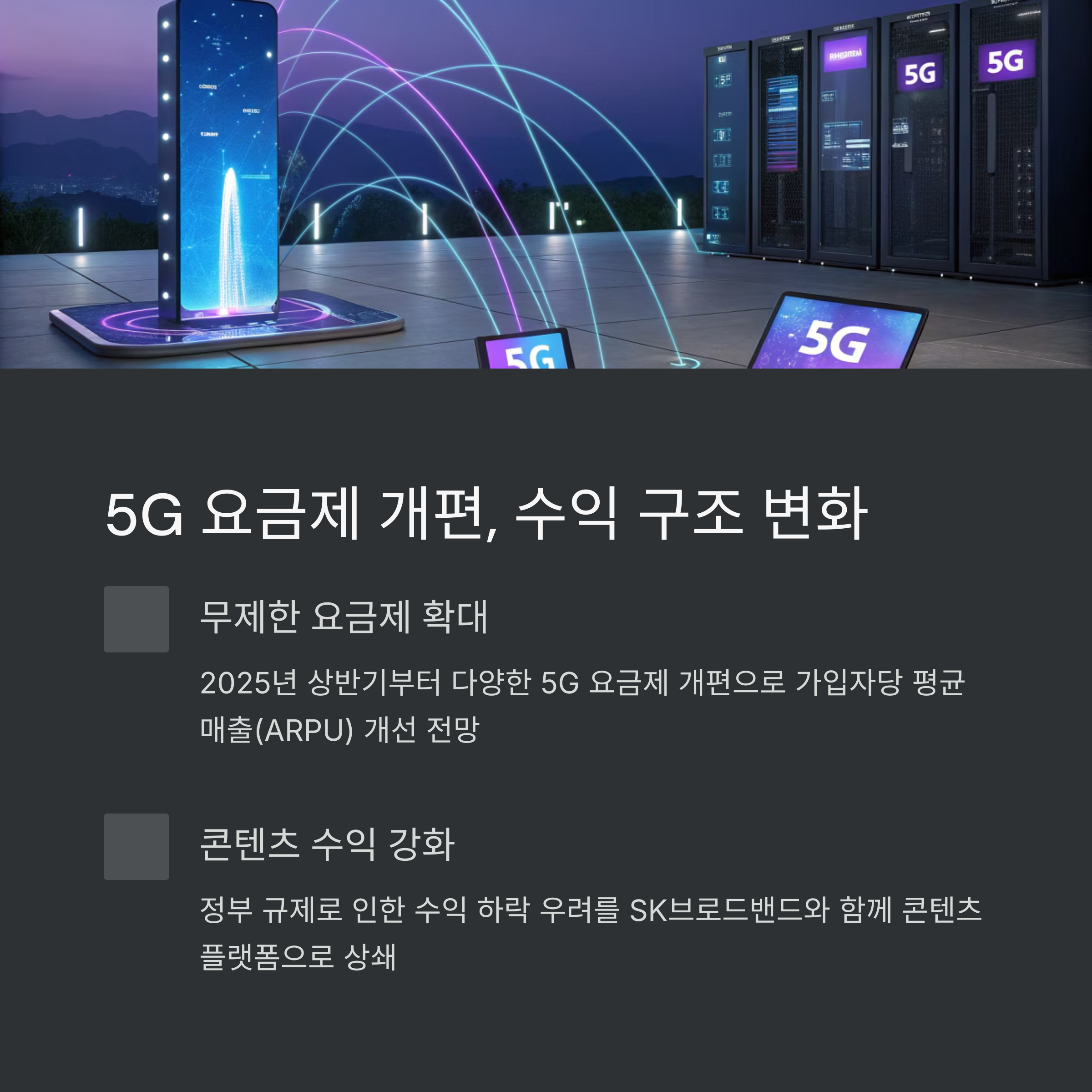 2025년 상반기부터 5G 요금제 개편이 본격화되며 SK텔레콤의 수익 구조에도 큰 변화가 예상됩니다.