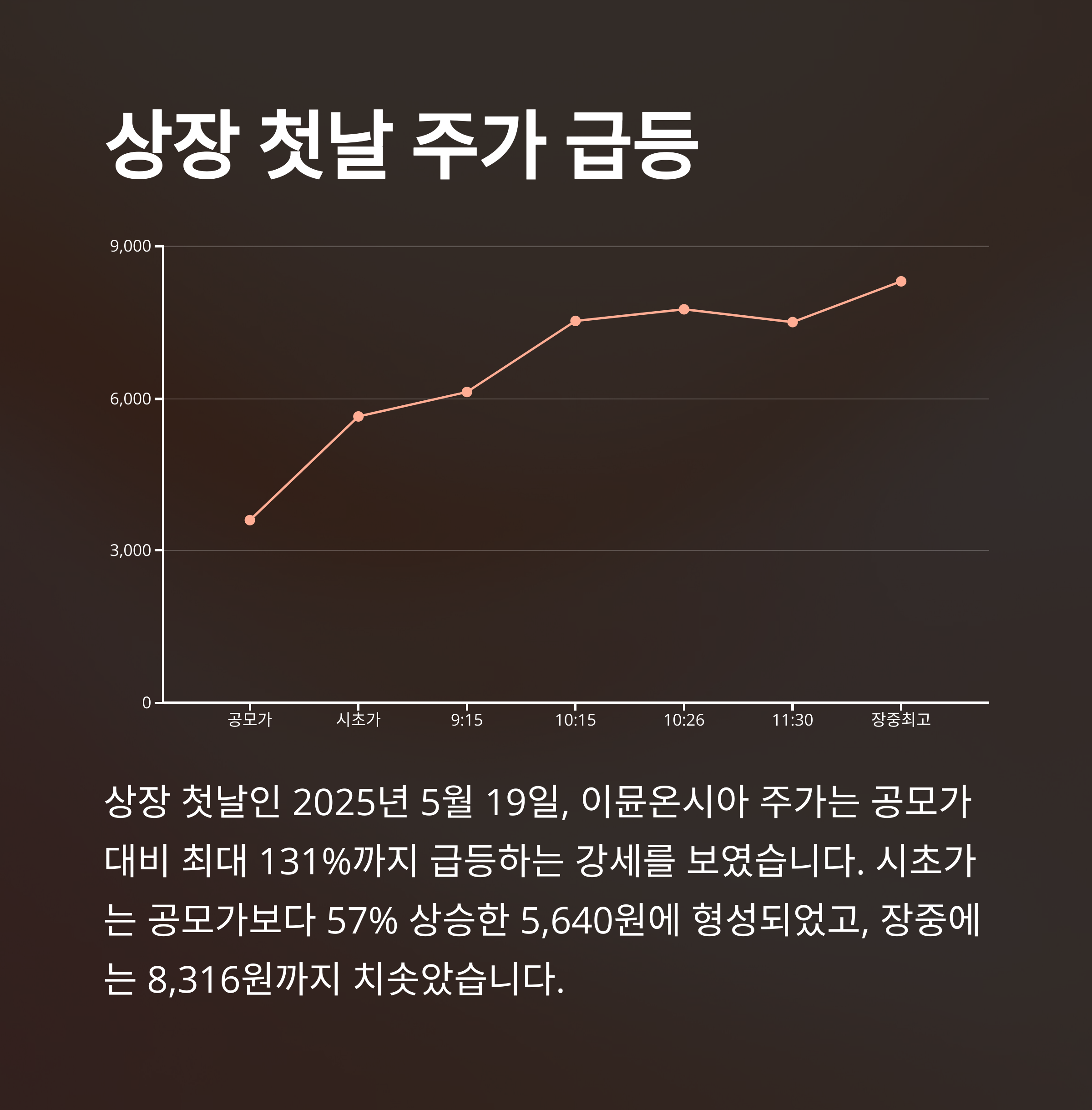 상장 첫날에는 시초가 5,640원으로 출발해 최대 7,760원까지 급등하는 강세를 보였습니다.