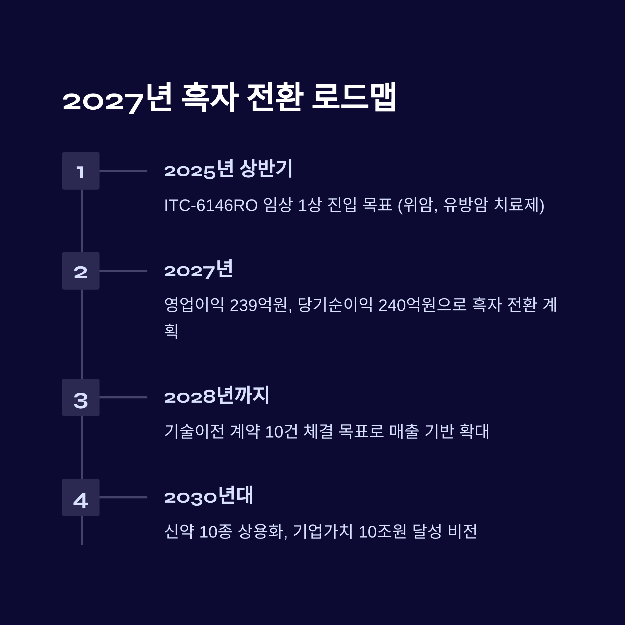 | 임상 진입 | 2025년 상반기 | ITC-6146RO 임상 1상 진입 |