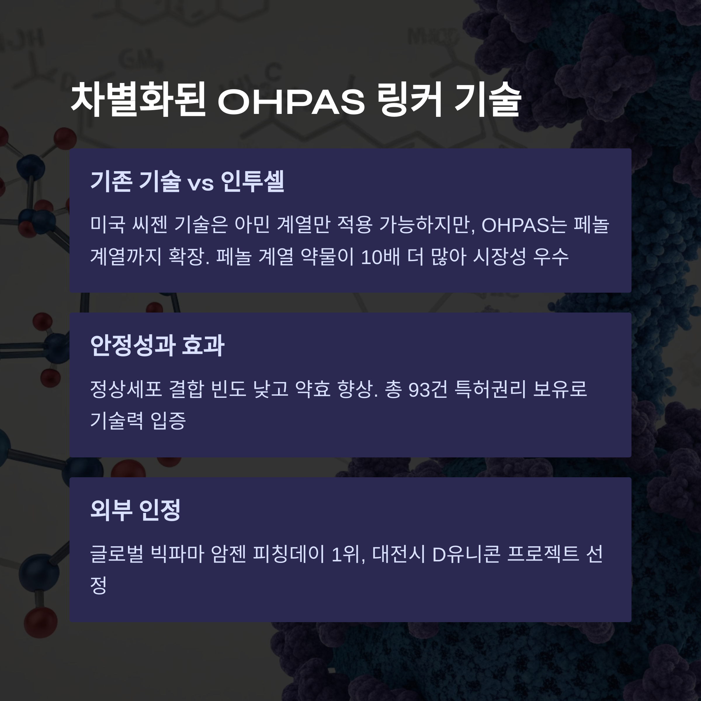 인투셀은 기존 기술의 한계를 극복한 OHPAS™ 링커 플랫폼을 보유하고 있습니다.
