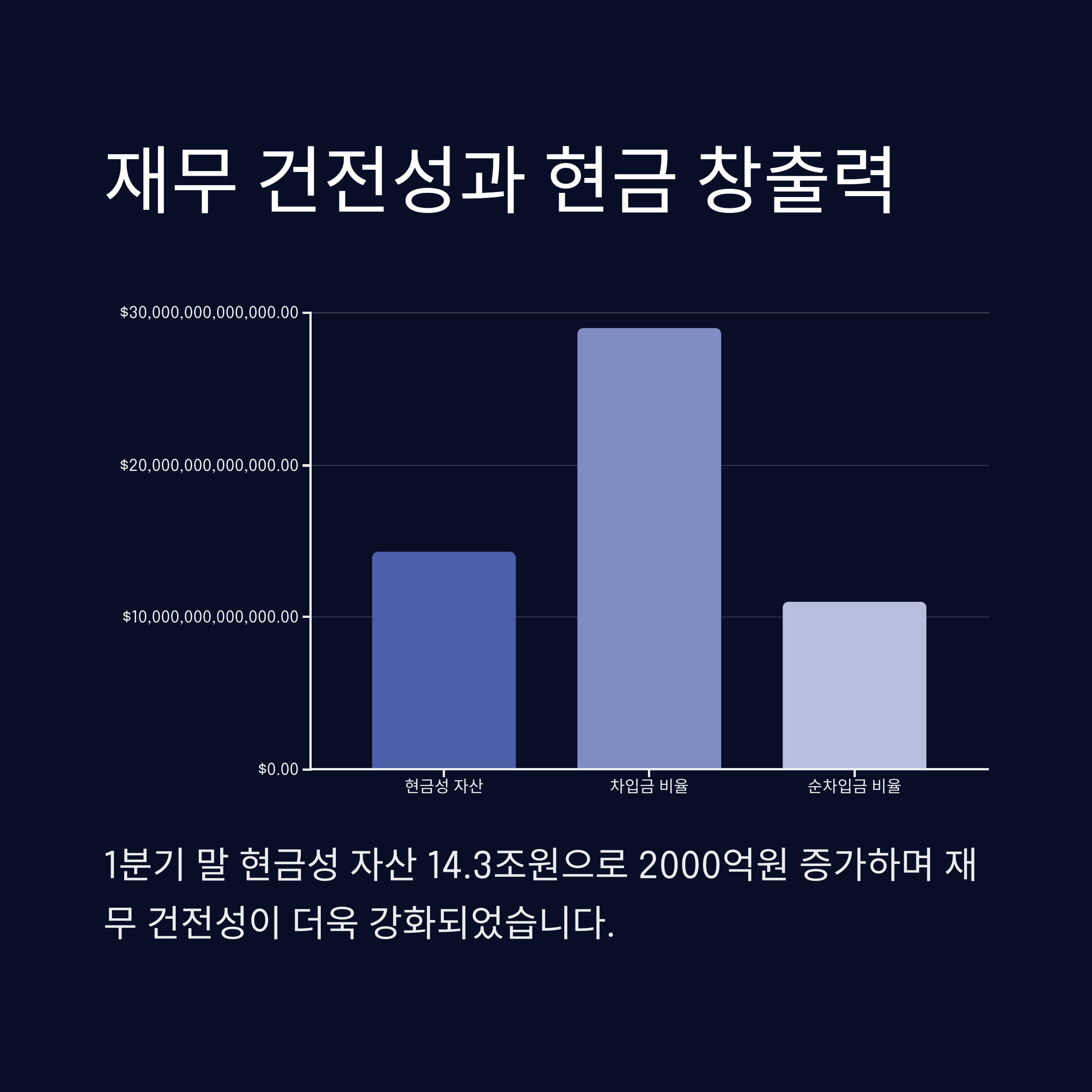 | 현금성 자산 | 12.3조 원 | 14.3조 원 |