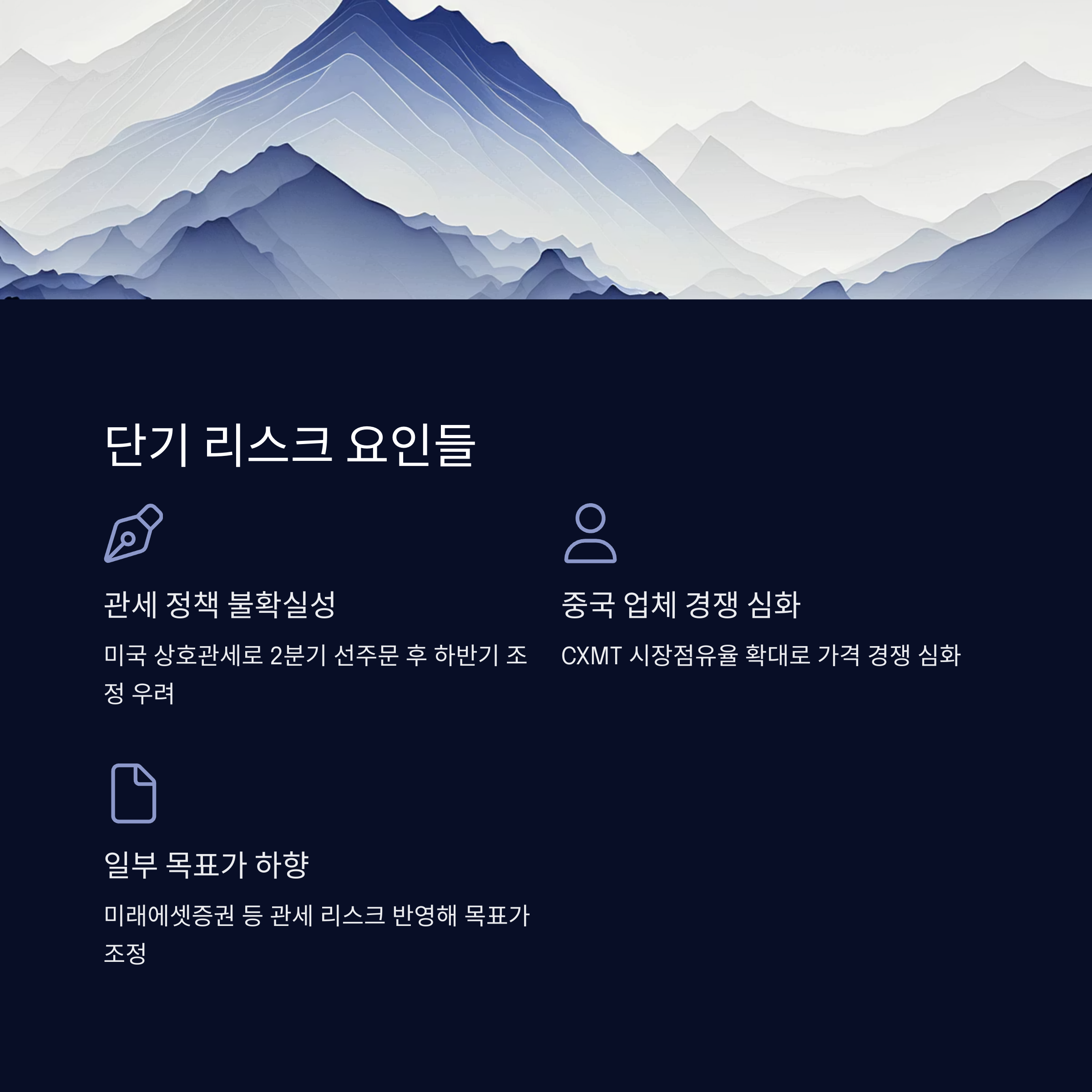 | 단기 리스크 | 관세 정책, 글로벌 경기 둔화 |