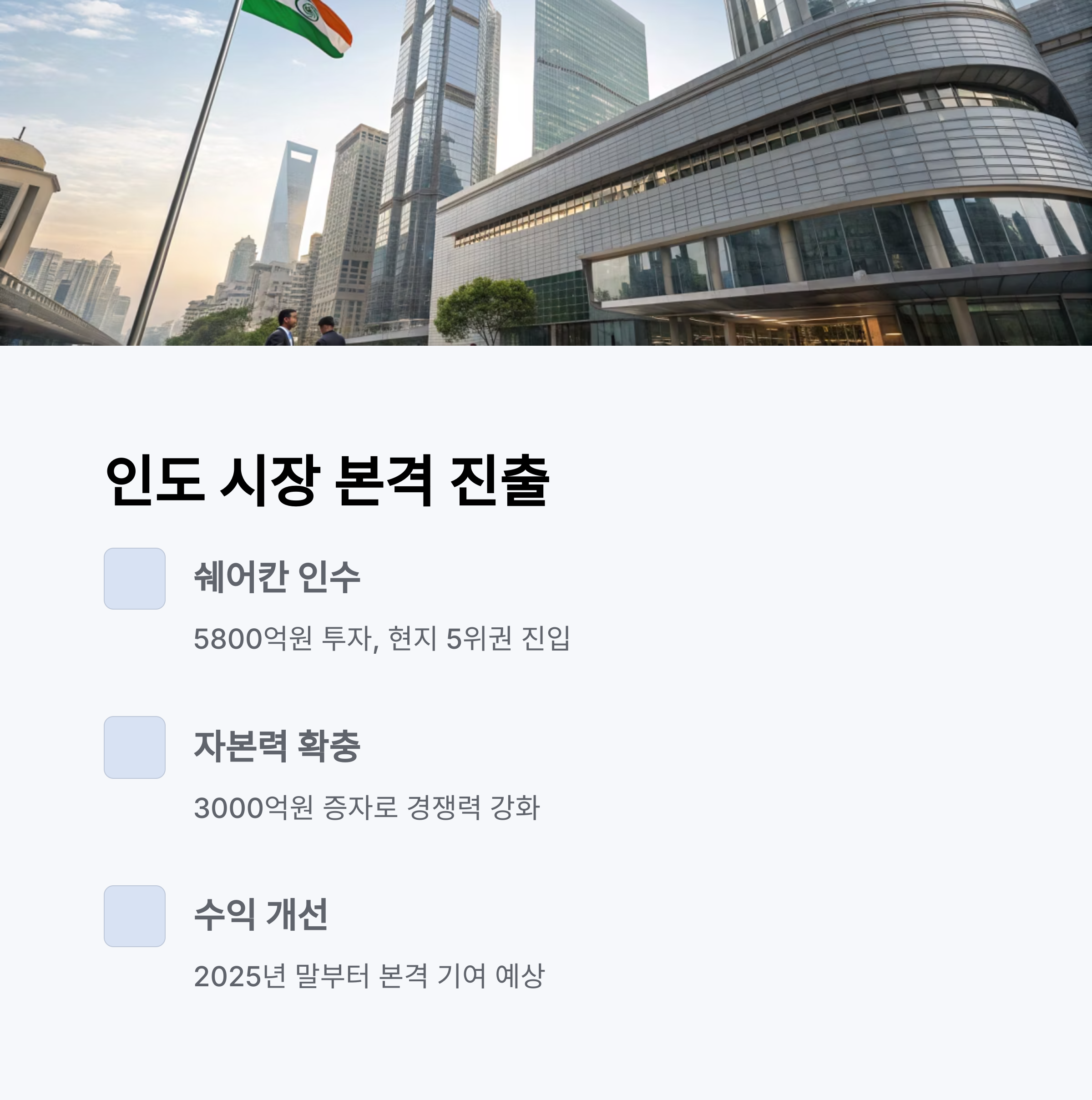 2024년 11월, 인도 증권사 쉐어칸을 약 5800억원에 인수하면서