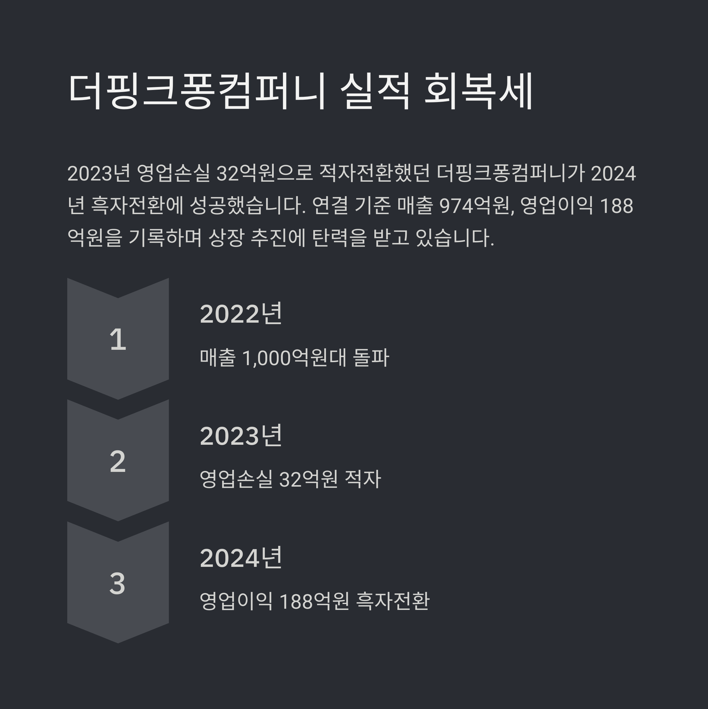 2024년 매출 974억원, 영업이익 188억원을 기록하며 흑자전환에 성공했습니다.