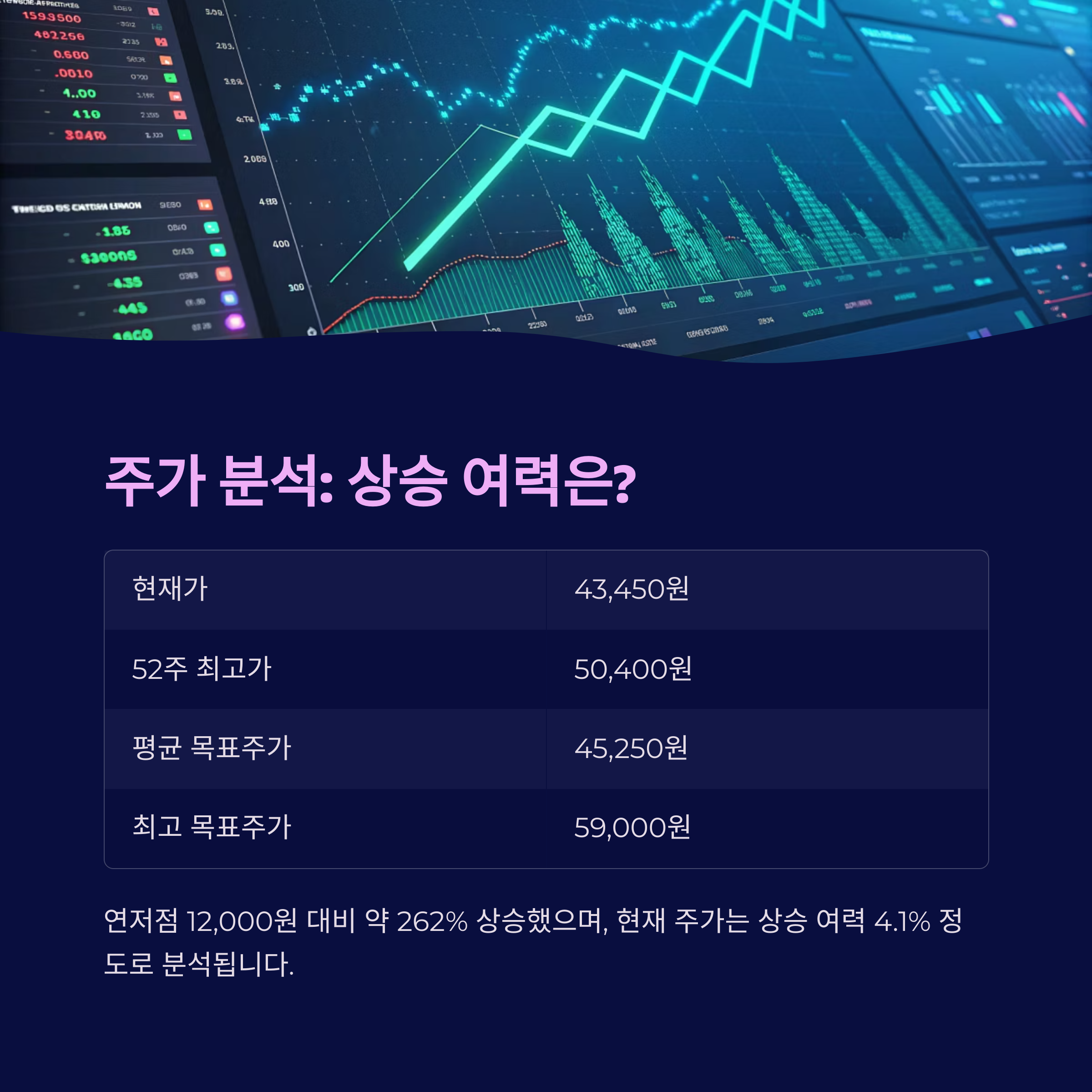 현재 주가는 목표주가 대비 소폭 상승 여력이 있으며, 중장기 투자자에게는 유망한 포지션으로 평가됩니다.