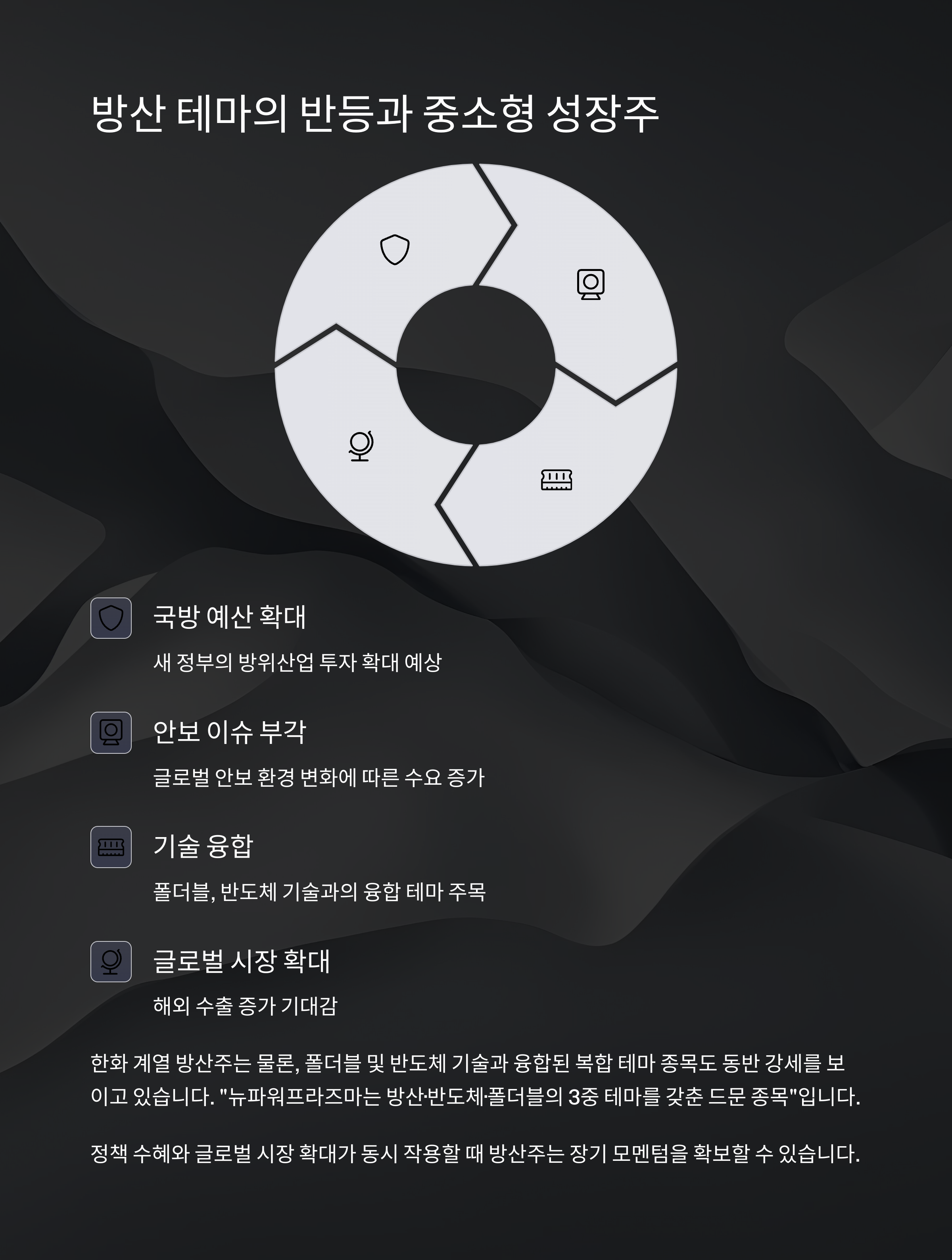 한화 계열 방산주는 물론, 폴더블 및 반도체 기술과 융합된