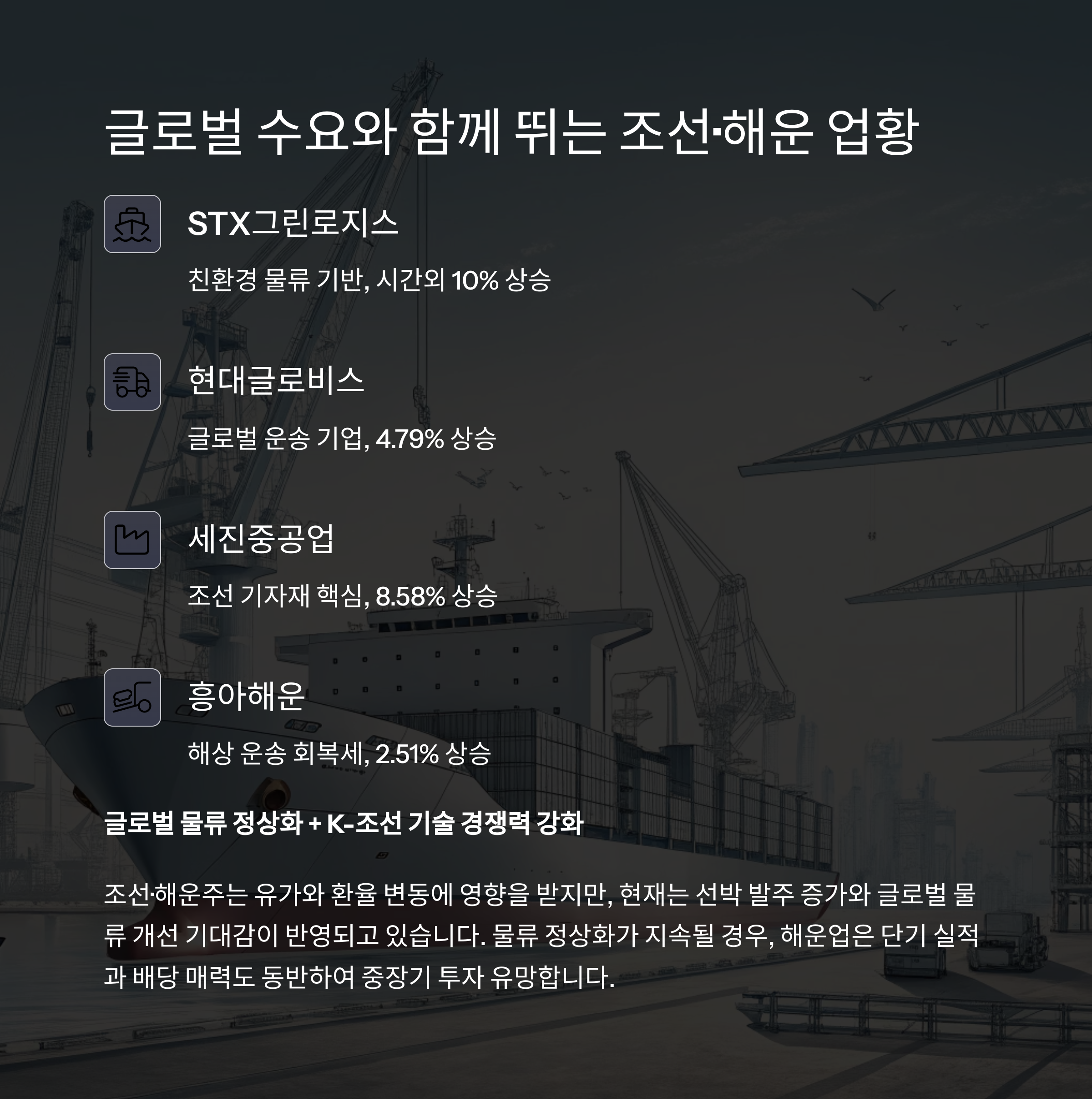 글로벌 물류 정상화 + K-조선 기술 경쟁력 강화