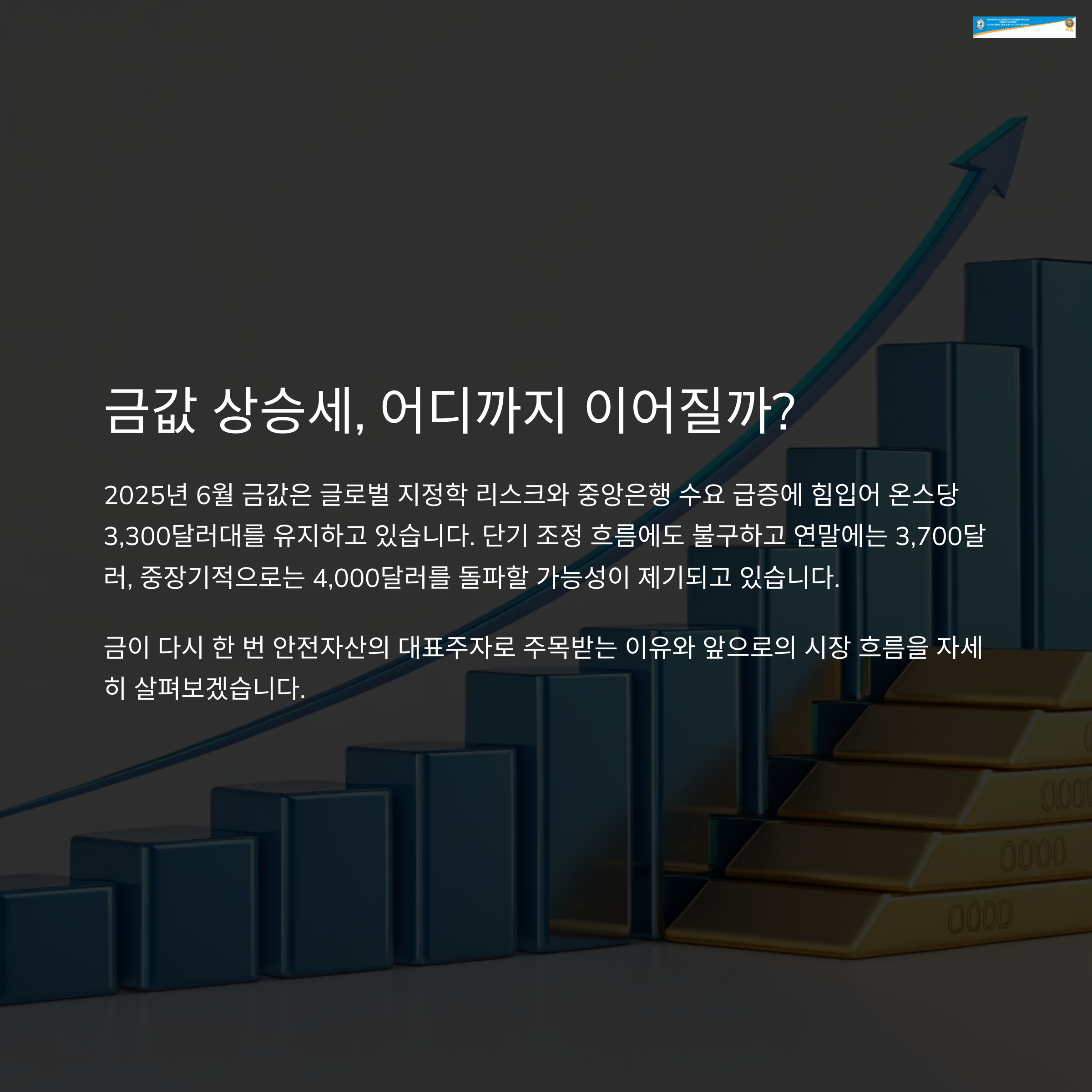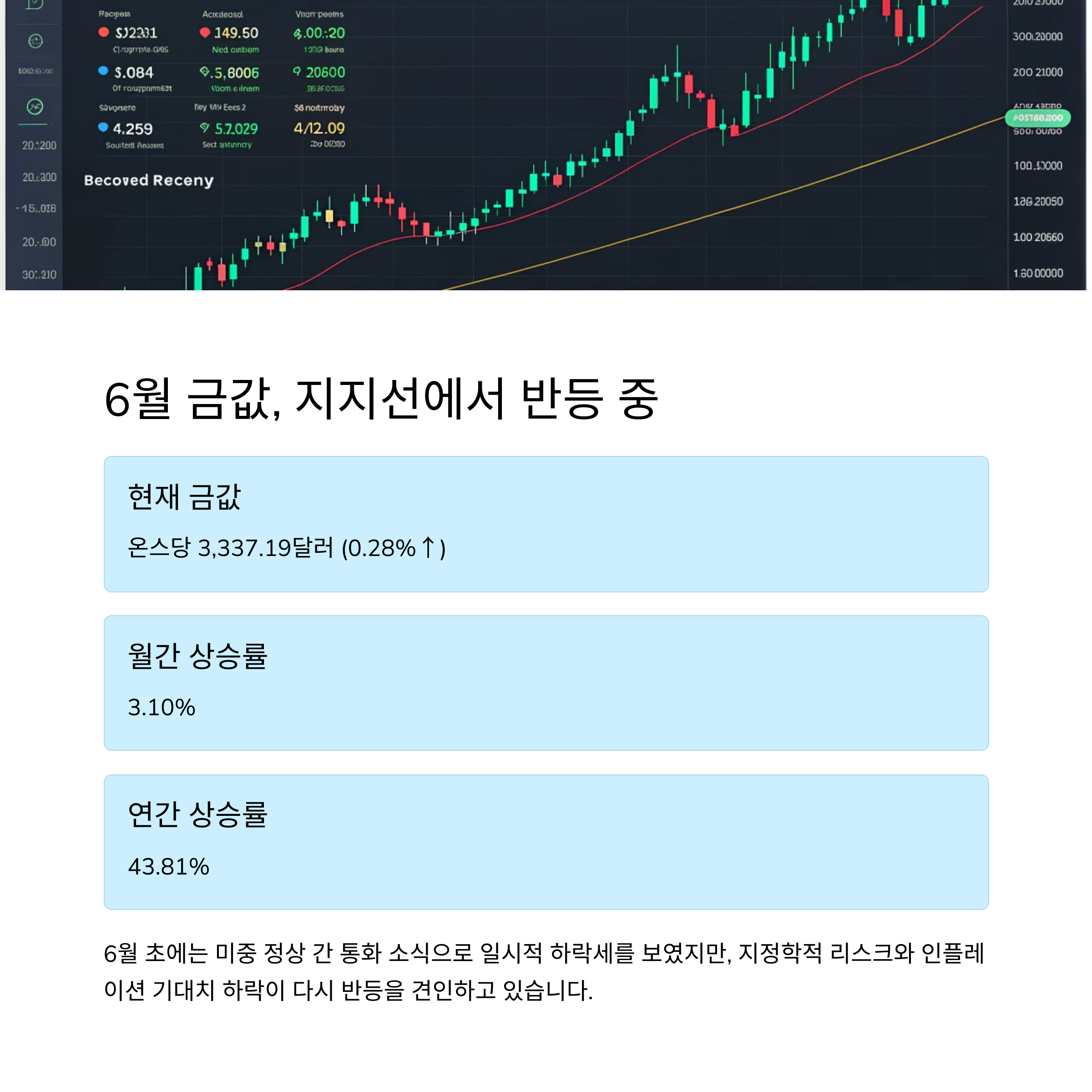 2025년 6월 금값은 글로벌 지정학 리스크와 중앙은행 수요 급증에 힘입어 온스당 3,300달러대를 유지하고 있습니다. 단기 조정 흐름에도 불구하고 연말에는 3,700달러, 중장기적으로는 4,000달러를 돌파할 가능성이 제기되며, 금이 다시 한 번 안전자산의 대표주자로 주목받고 있습니다. 본문에서는 6월 금값 동향부터 장기 시나리오까지 전반적인 금 시장 흐름을 분석해 보겠습니다.