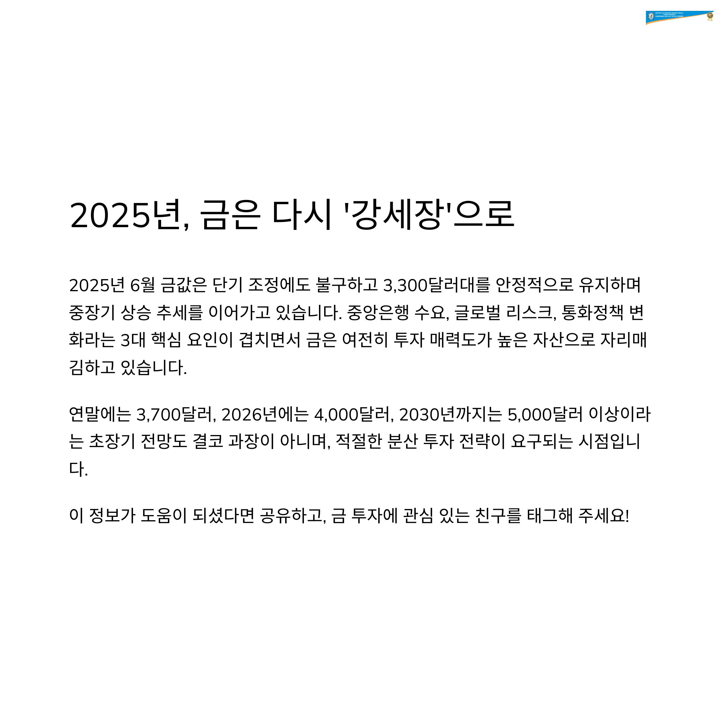 결론: 2025년, 금은 다시 ‘강세장’으로 회귀