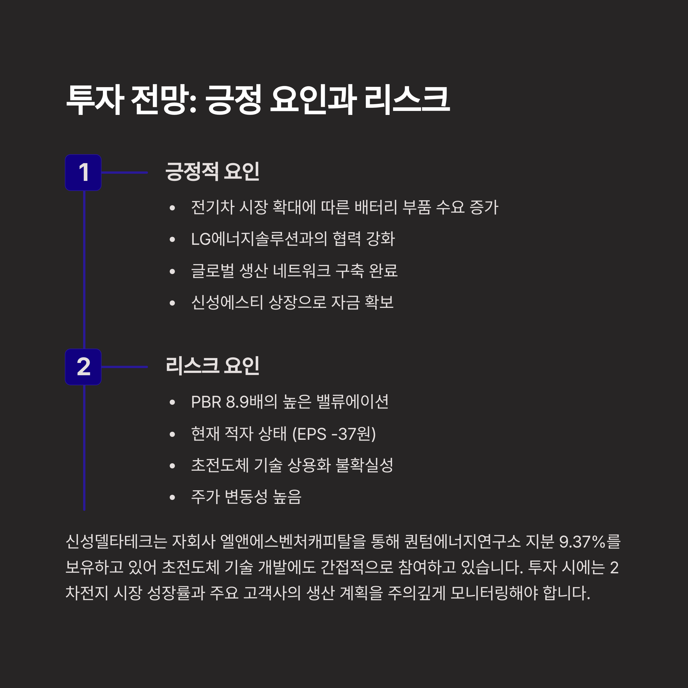 아래는 신성델타테크 투자 유·불리 요인을 표로 정리한 내용입니다.