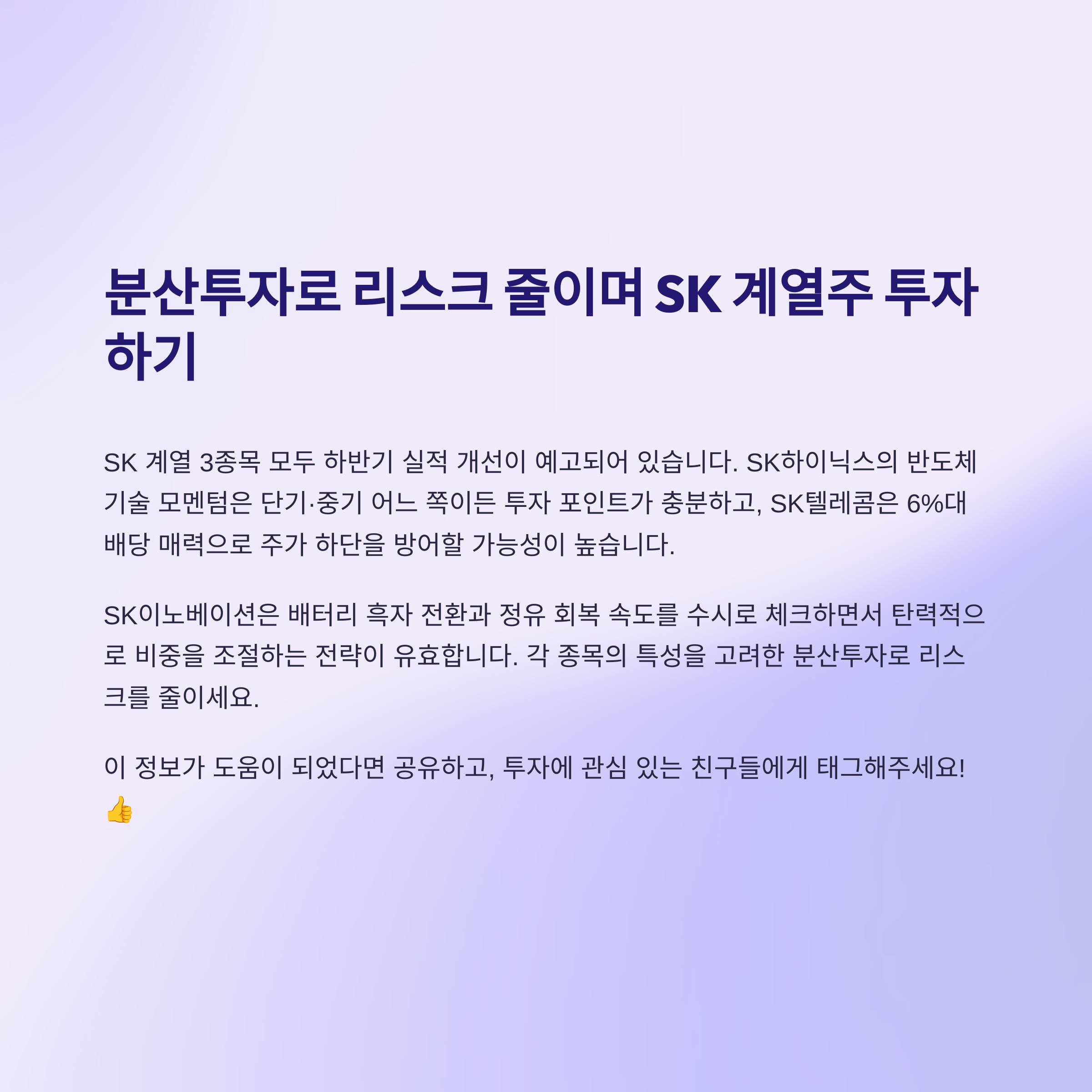 결론, 분산투자로 리스크 줄이며 SK 3종목 담기