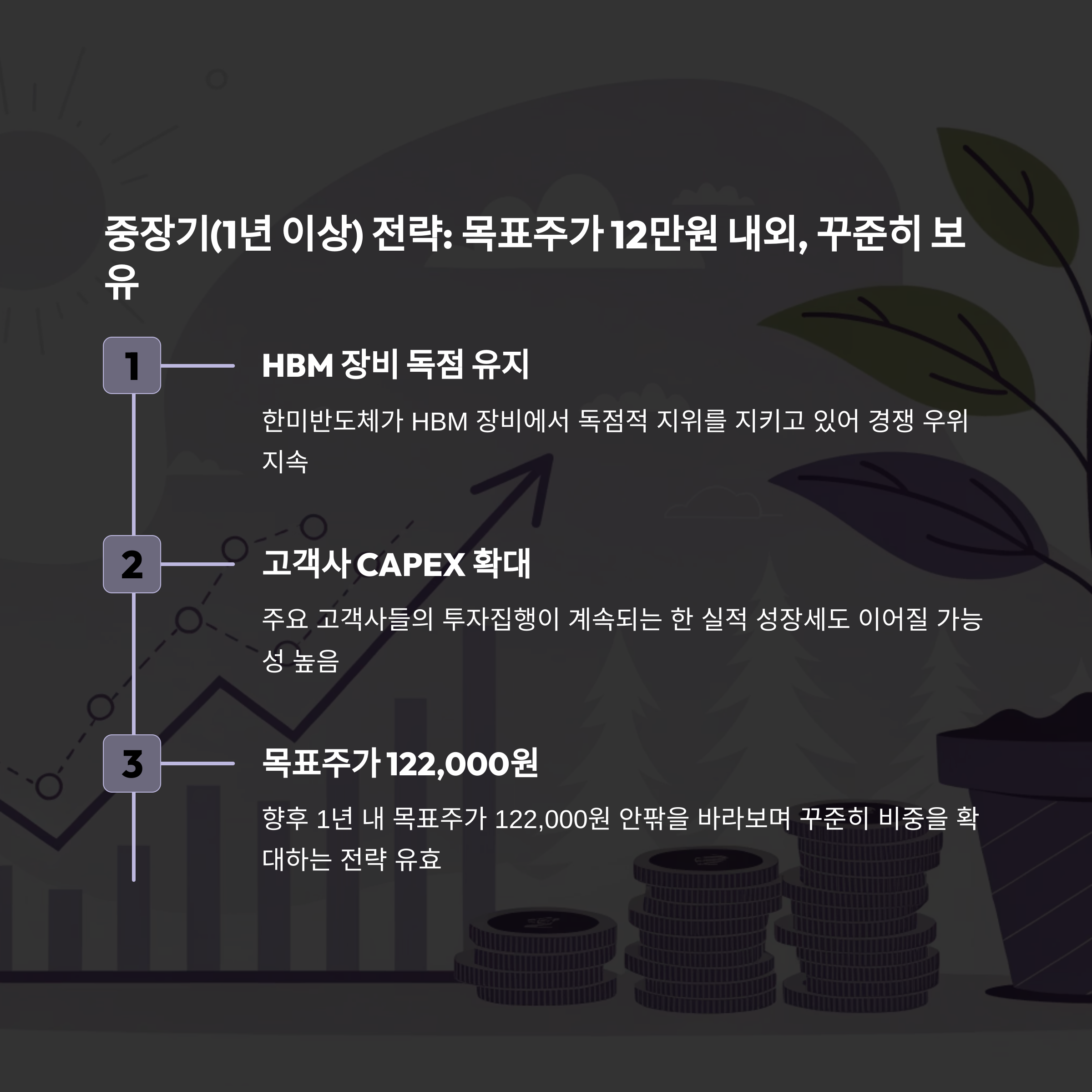 중장기적으로는 한미반도체가 HBM 장비에서 독점적 지위를 지키고 있는 만큼