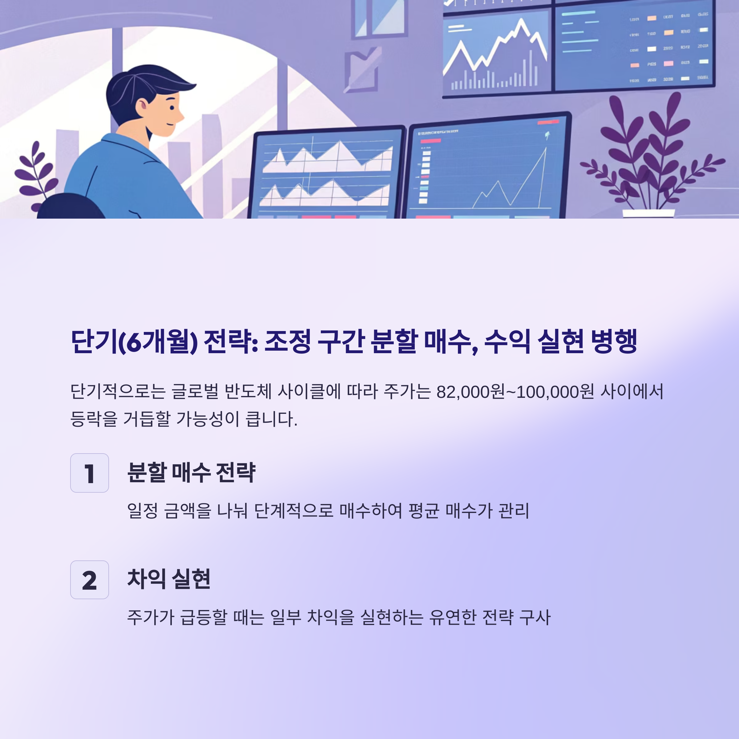 단기(6개월) 전략: 조정 구간 분할 매수, 수익 실현 병행