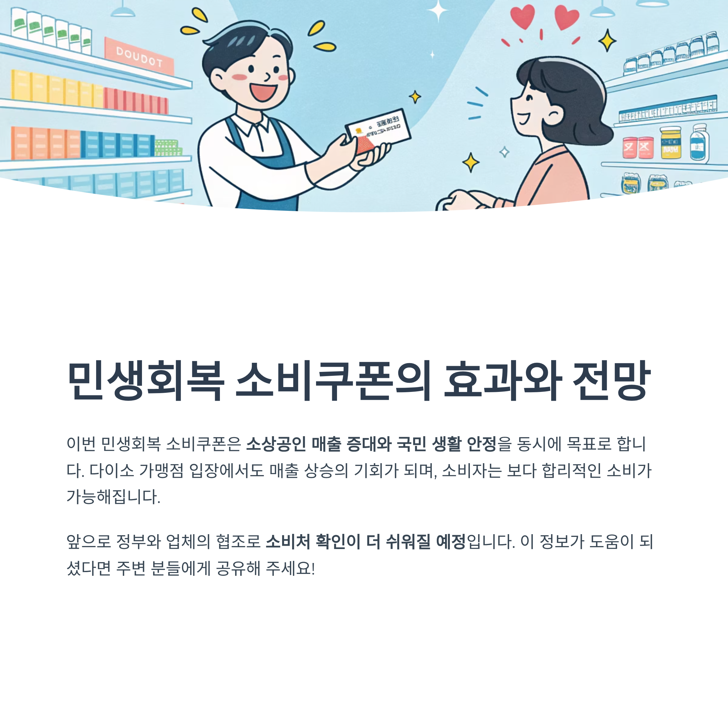 이번 민생회복 소비쿠폰은 소상공인 매출 증대와 국민 생활 안정을 동시에 목표로 합니다.