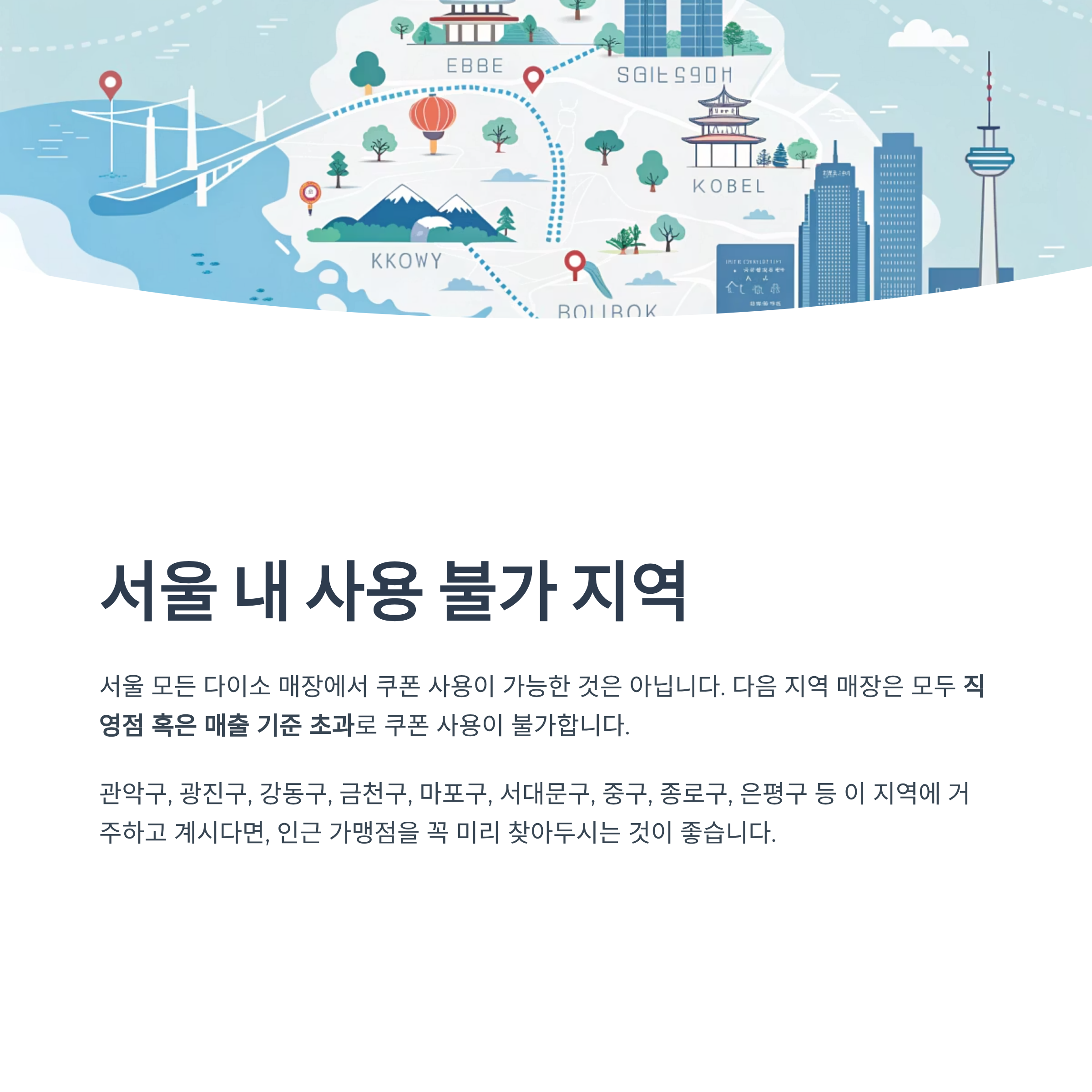 다음 지역 매장은 모두 직영점 혹은 매출 기준 초과로 쿠폰 사용이 불가합니다.