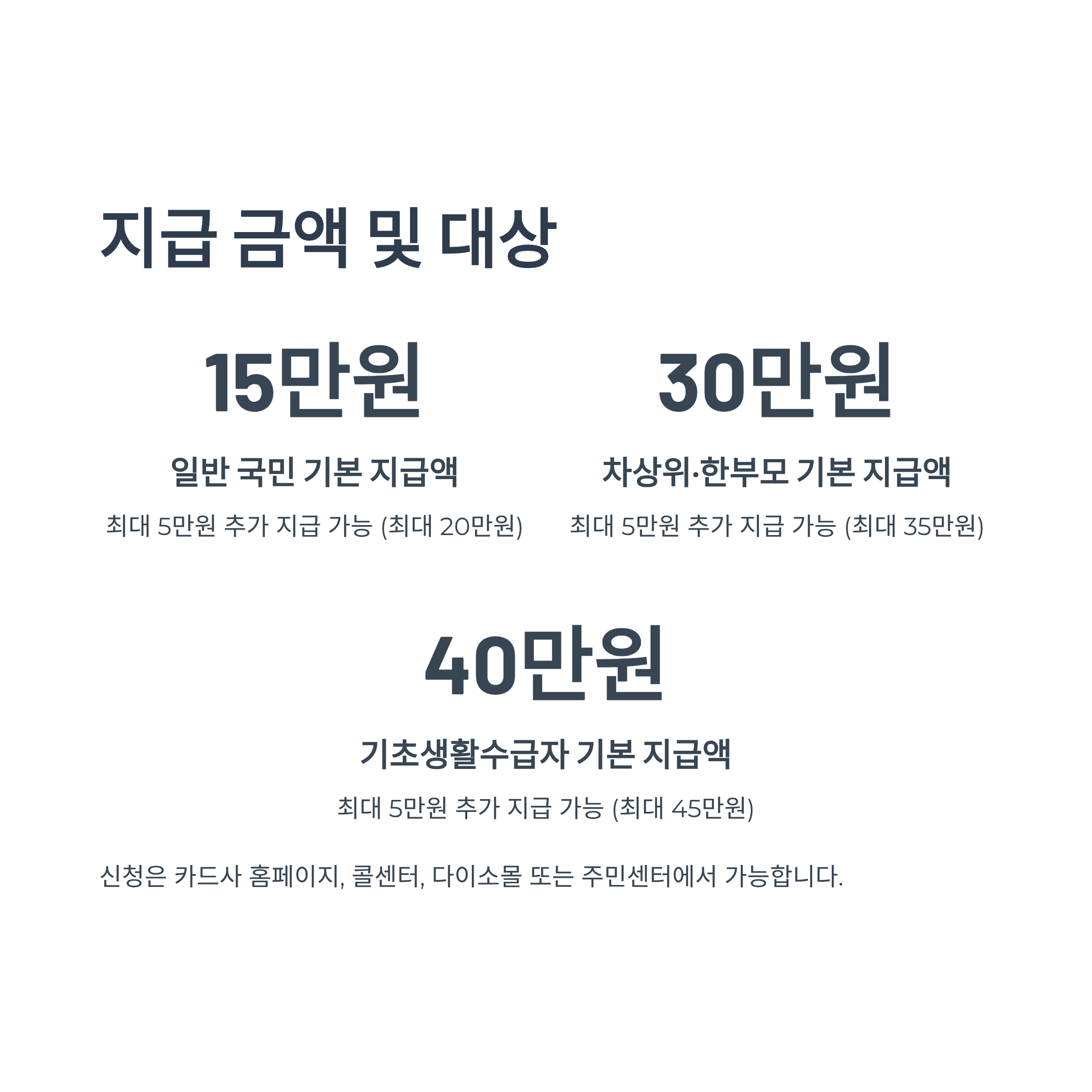 | 지급 대상 | 기본 지급액 | 추가 지급 (지역 기준) | 최대 지급 가능 금액 |