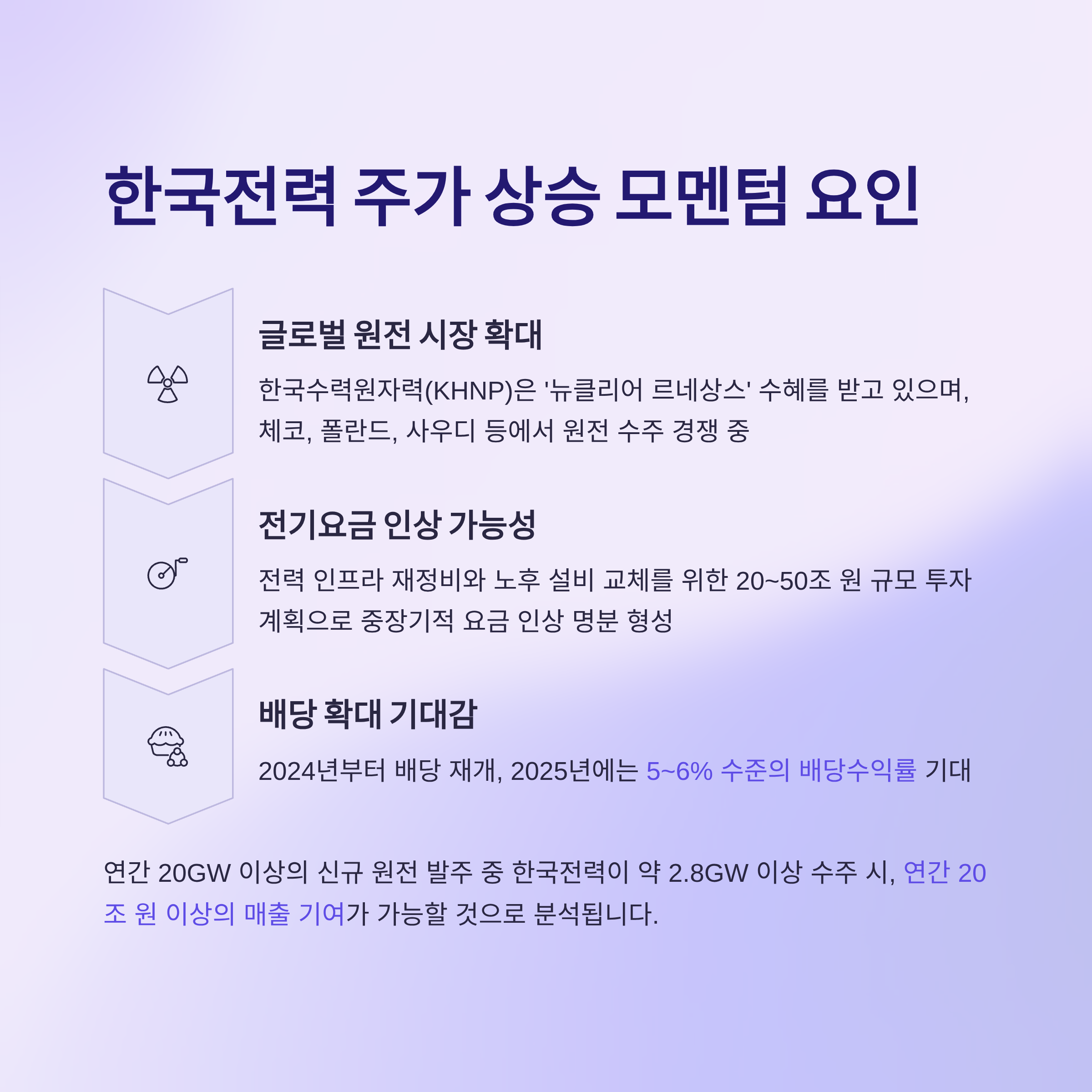 - 원전 수주 수혜 가능성: 연간 20조 원 이상 신규 매출 확보 가능