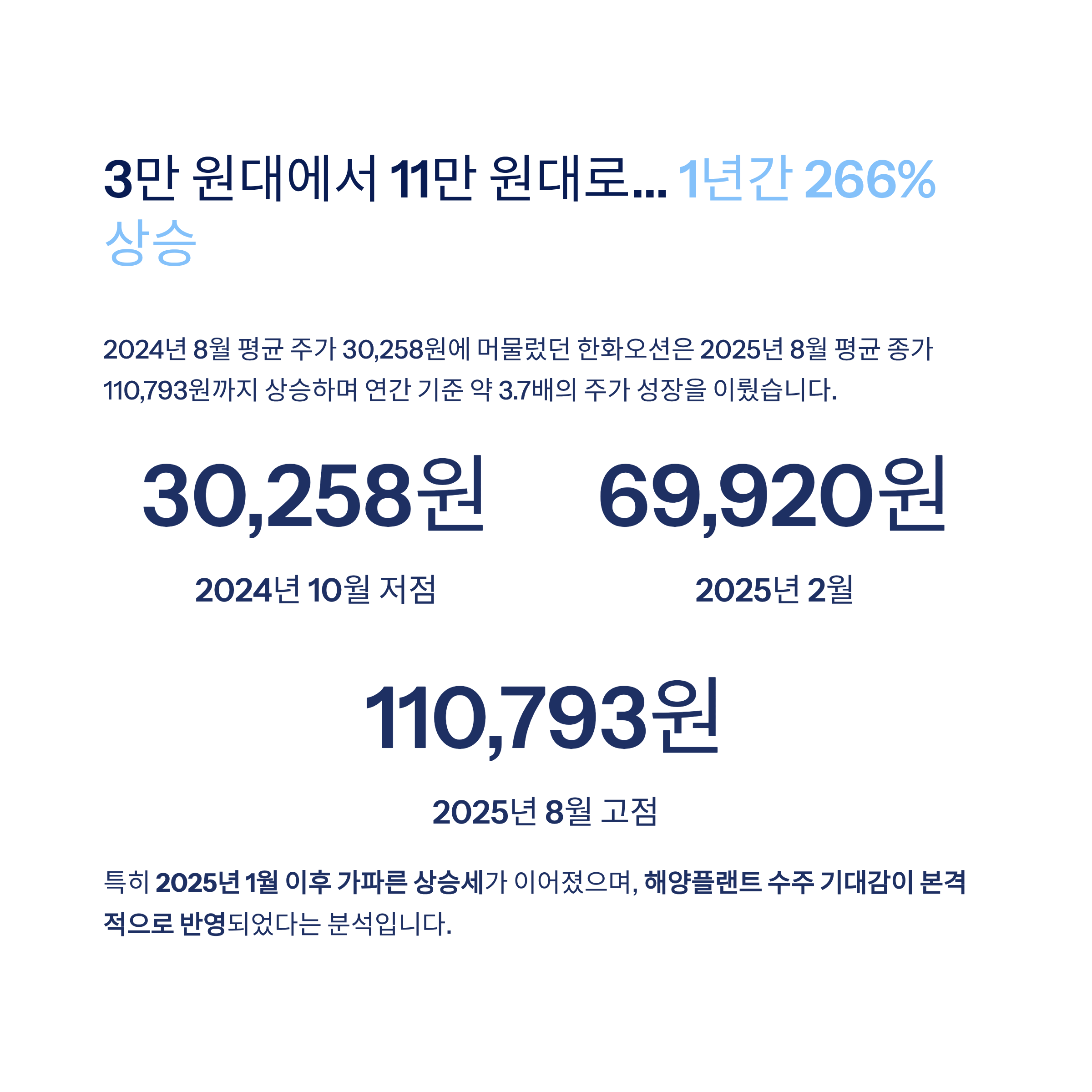2024년 8월 평균 주가가 약 30,258원에 머물렀던 한화오션은