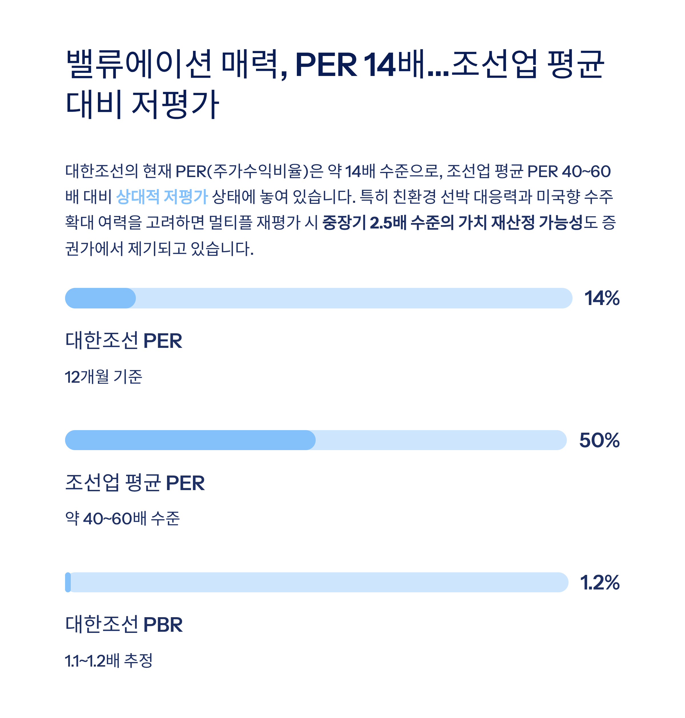 대한조선의 현재 PER(주가수익비율)은 약 14배 수준으로,
