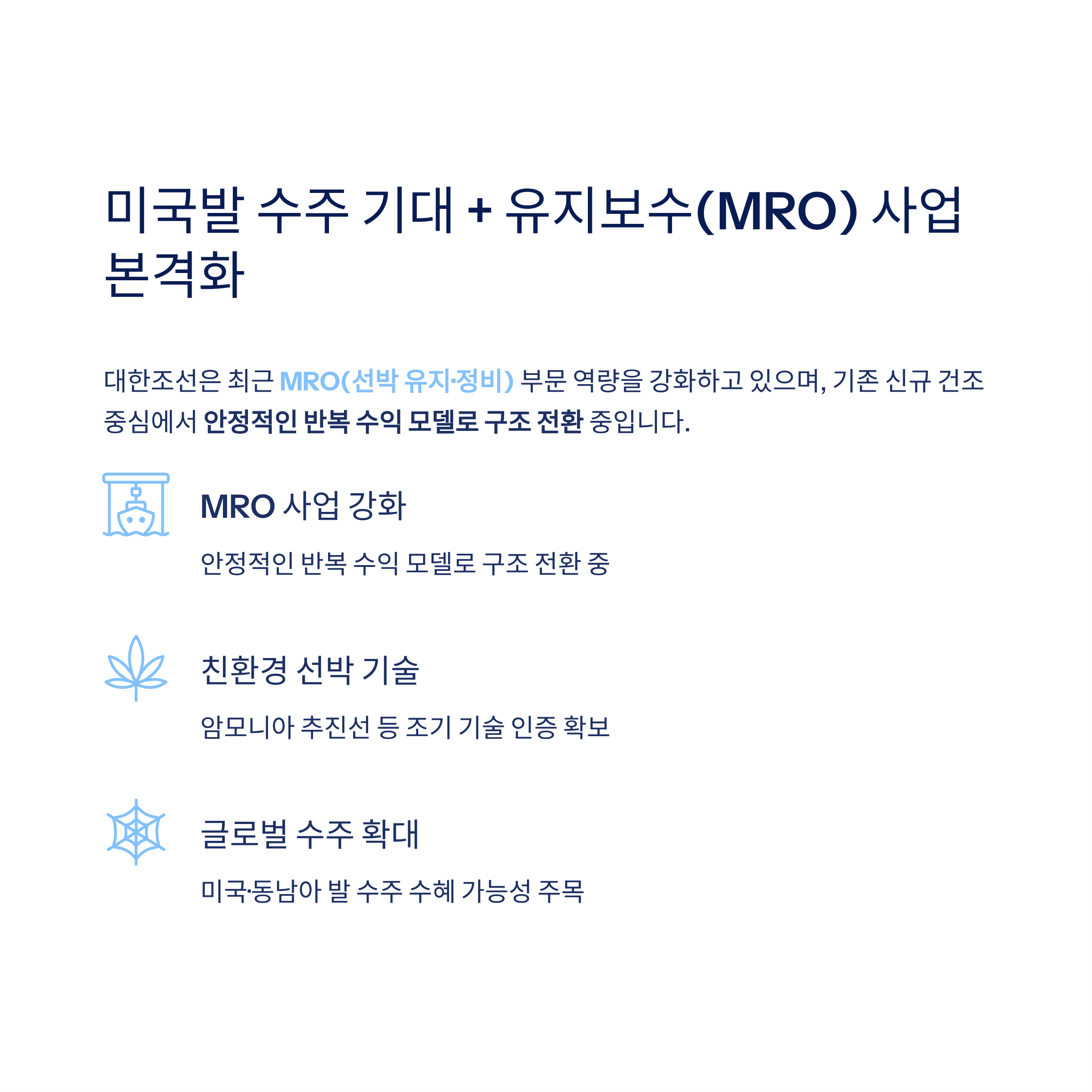 미국발 수주 기대 + 유지보수(MRO) 사업 본격화