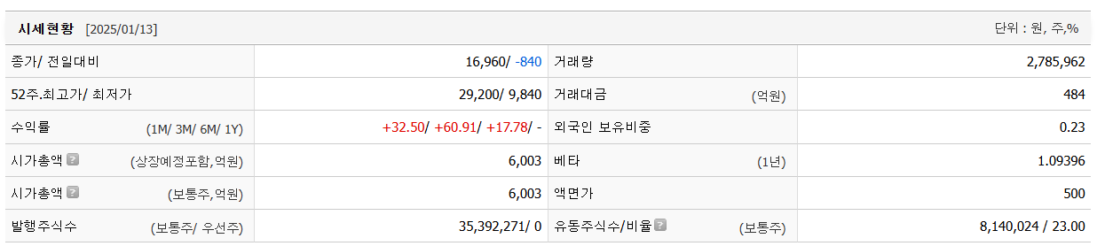 | 한국첨단소재 주가 관련 주요 지표 분석 (0) | 2025.01.15 |