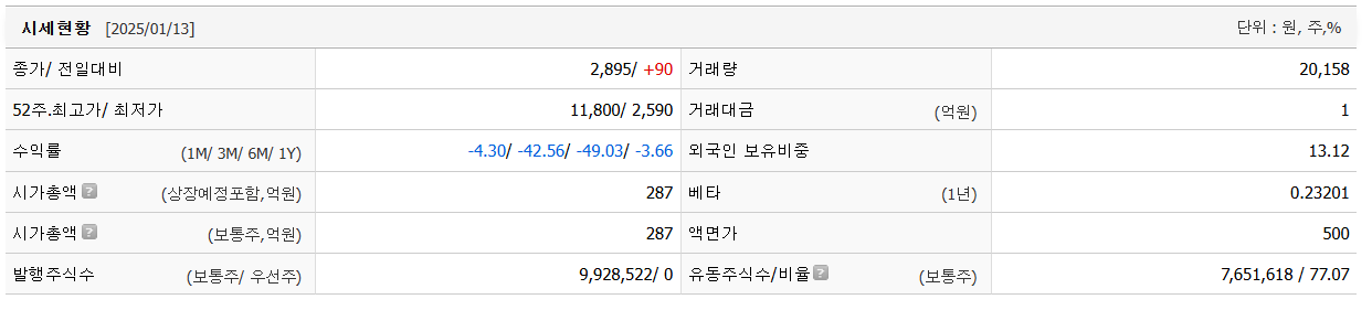 단기 포트폴리오를 구성한다면 시가 총액과 장중 거래량도 꼭 살펴봐야 합니다. 엑스큐어의 시가 총액은 373억 원이며 장중 거래량은 20,158원 을 기록했습니다. 대주주의 정보는 크게 중요하지 않을 수 있으나 장기적인 관점에서는 확인해보는 것이 좋겠습니다.